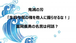 鬼滅の刃 「生殺与奪の権を他人に握らせるな!」富岡義勇の名言は何話?【鬼滅の刃】 鬼滅の刃に登場する水柱(みずばしら)富岡義勇(とみおか ぎゆう)の名言!『生殺与奪の権を他人に握らせるな!』今回は水柱である富岡さんのこのセリフがアニメ・漫画の何話で出てくるのかや、登場話を無料で観る方法などをご紹介します! 2021.11.04 鬼滅の刃